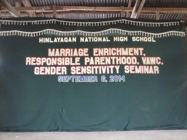 Last 06 September 2014 at Hinlagayan Trinidad, Bohol, The Philippines, because of Pro-Family and Pro-Gender Acceptance, two of the Corporate Values of Familia Sauza-Berenguer de Marquina Corporation, yours truly was invited as the guest speaker of Hinlayagan National High School's Parents and Teachers' Association for their annual gathering.The seminar was divided into four topics namely